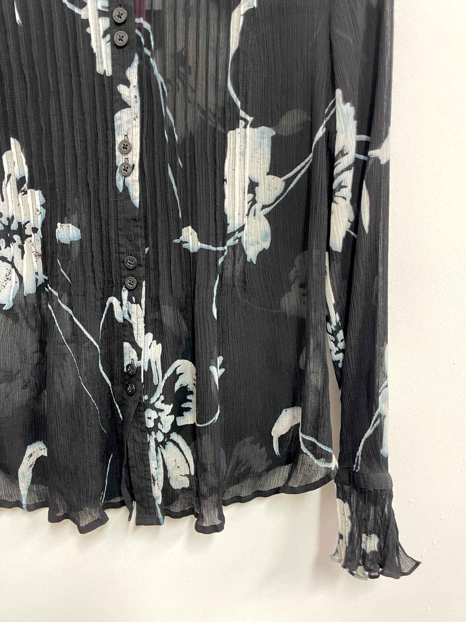 Blusa negra con flores y pinzas - Emanuel - Talla M