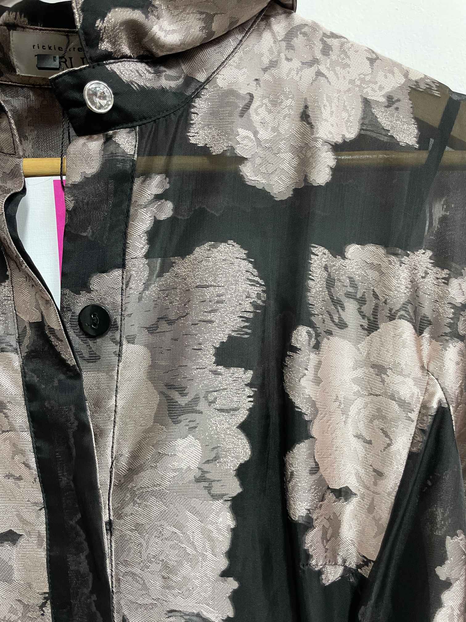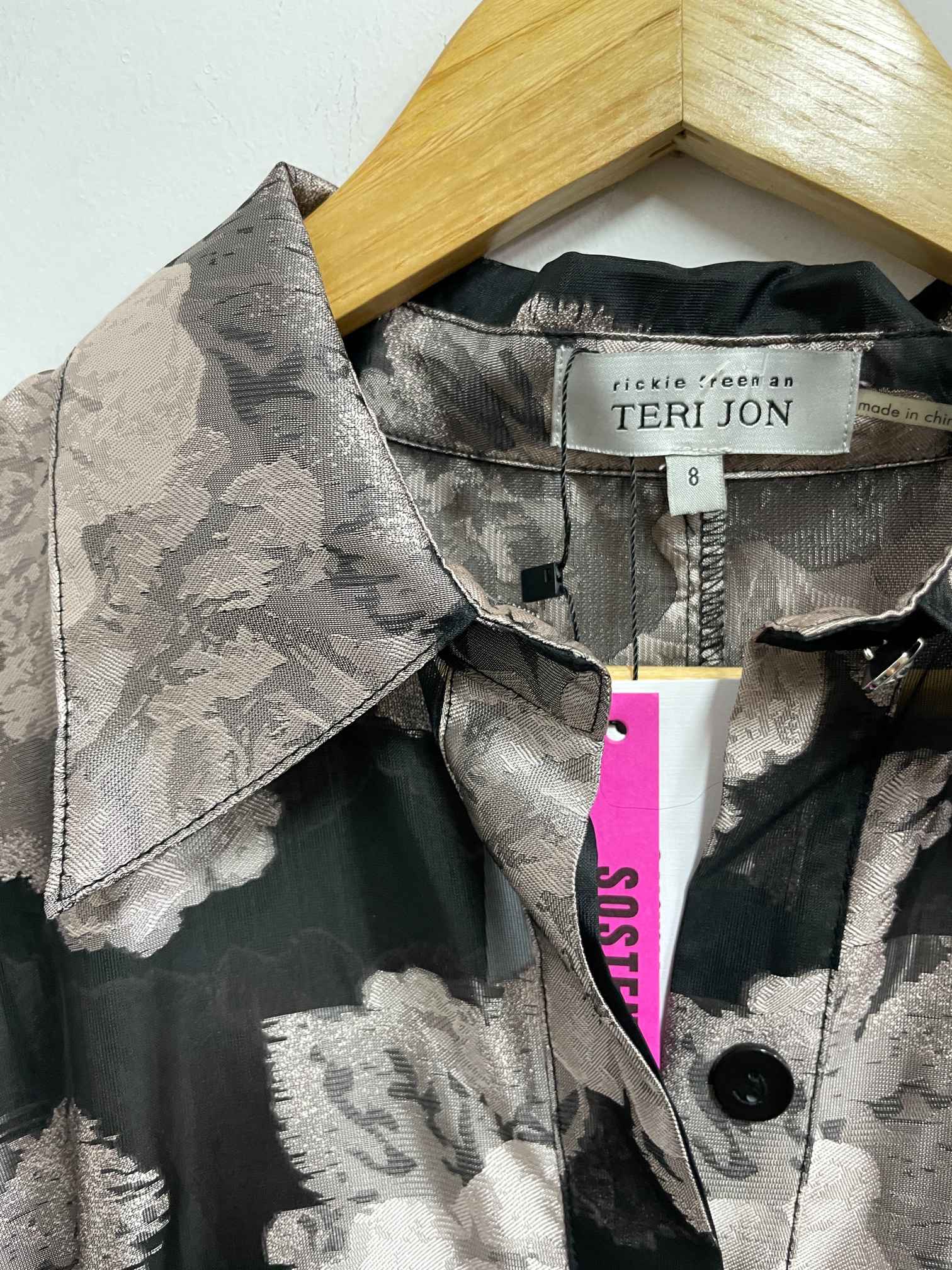 Vestido negro flores rosadas - Teri Jon - Talla S